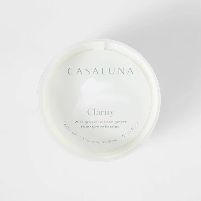 Lift your spirits with the refreshing, pleasant fragrance of the 12oz Clarity Fashion Salted Glass Candle White from Casaluna™. Made of coconut oil, paraffin and soy wax in a glass jar, the ginger, grapefruit and bergamot scented candle burns bright and adds a touch of extra flair to your mantel, foyer table or coffee table. This elegant Casaluna™ clarit fashion salted glass candle captures urban style and adds functionality to make an ideal gift for yourself or others.