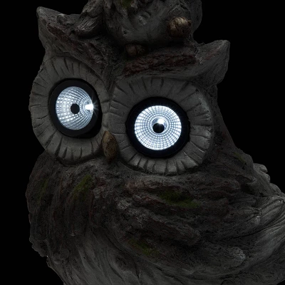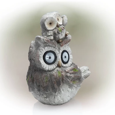 Welcome your house guests with the warm and inviting 15″ tall Outdoor Solar Powered Owl and Owlet Yard Statue with LED Lights from Alpine Corporation. This statue features a wide-eyed owl and its owlet that provide a unique and decorative playful addition to your home’s exterior décor. The lighted yard art is powered by solar energy to keep your outdoor yard statue lit up and features a pair of warm white LED lights located in the adult owl’s eyes. Constructed from durable magnesia, the yard art is made tough for outdoor use and is weather-resistant for long-lasting, quality use on your porch, patio, or flowerbeds. Add one or multiple statues to create an enchanted garden display. The yard décor is perfect for display on pathways, entryways, decks, courtyards, and outdoor living spaces. The outdoor garden statue measures 12″L x 9″W x 15″H to fit almost any outdoor space and includes a one-year manufacturer’s warranty from date of purchase.