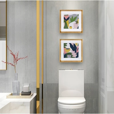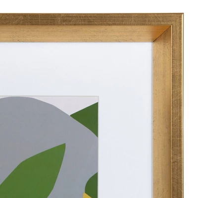 Originally one large image, this 2pc set has been divided into a dual arrangement that can be displayed together or separately. Each framed print displays s bold and beautiful collage with a Scandinavian style design. The artist uses gorgeous muted pastel colors and hand cuts each piece using scissors to create a fascinating piece that is then made into digital artwork. Framed in a fashionable gold, this lovely, modern set is the perfect wall art to add to your home decor collection.