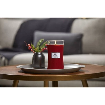 Fill your curated home with the rich, nuanced scents and the distinctive, iconic look of the WoodWick Large Hourglass Candle with a wooden lid. The Pluswick® Innovation wooden wick enhances the sensory experience with a distinctive crackle and intriguing glow. The WoodWick Cinnamon Chai fragrance will fill your home with the aromas of a relaxing chai, savoring spicy cinnamon, clove, and rich, sweet vanilla.