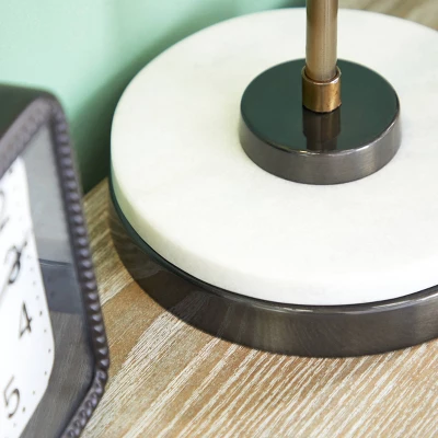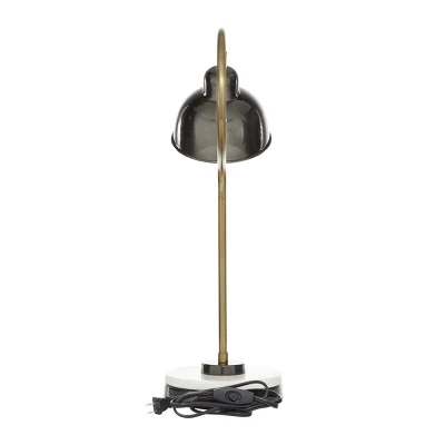 Brighten up any room to create a warming atmosphere for you and your guests with this chic desk lamp. Make a statement with this unique lamp on mantle, console table or in any living space. Use as an elegant desk nightshade in the bedroom, home office, living room, or personal library. Designed with black rubber stoppers at the base that prevent scratching furniture and table tops, as well as sliding around. Requires 1 Candelabra bulb, not included. This item ships in one carton. Cord length is 59 inches. Suitable for indoor use only. Gunmetal bowl shaped metal lamp shade is 7″ x 7″ x 5″. Comes with an on/off switch. Made in India. Designed with an industrial theme.