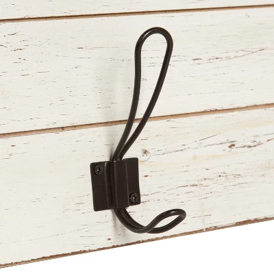 - Solid wood plaque holds a shelf and hooks for your keys, coats, and all your entryway needs
