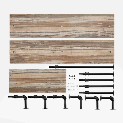 - The 3-tier iron pipe wall décor shelving comes with assembly instructions and all mounting hardware included