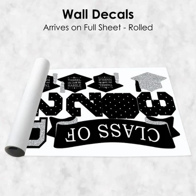 Big Dot of Happiness Tassel Worth The Hassel – Silver Wall Decals includes 1 sheet of 20 assorted vinyl wall art stickers that you can arrange to add a special touch to your home decor. Wall Decal sheet measures 50″ wide by 16.5″ tall. Pieces range in size from 26.5 x 5.75″ to 2.5 x 2.5″. Effortless Decor: The Silver Grad wall stickers are an easy solution for bringing in some added charm to your space within minutes! You can use the wall decals for party or celebration rooms, impressive photo backdrops, or as easy decor at your Graduation Party. Easy to Use: Tassel Worth The Hassel – Silver vinyl decals are easy-to-peel and repositionable. Wall art stickers will adhere to various surfaces including painted walls, plastic, wood, glass, and metal. To use, make sure your surface is clean and dry. Slowly peel the sticker from the paper to avoid tearing and smooth over with your hand. They are also easy to remove, leaving no residue. High-Quality Supply: Tassel Worth The Hassel – Silver wall stickers come with a quality matte finish and vibrant colors. They are printed on water-resistant professional quality material and will arrive on one full sheet rolled. Made In The USA: Silver Grad Wall Decals are designed and manufactured at our Wisconsin facility using materials that are Made in the USA. Tassel Worth The Hassel – Silver Vinyl Stickers uses a No-Mess Glitter Print: Our vinyl stickers are designed with a printed image of glitter, eliminating glitter flake while maximizing bling effect!