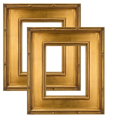 - VARIETY: These closed corner frames come in a convenient 2 Pack in various sizes including: 5×7″, 6×8″, 8×10″, 9×12″, 11×14″, 24×36″, and more, in a stunning gold finish; No backing or glass included