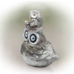 15″ Solar Owls LED Light Magnesium Oxide Statue Brown – Alpine Corporation
