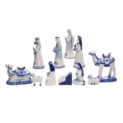 Kurt Adler 1.97-6.7 Inch Porcelain Delft Blue Nativity Set, 11-Piece Set