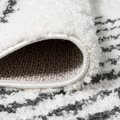 Inspired by Moroccan rugs, our modern striped rug has a soft, low shag pile. The geometric pattern is woven in ivory on a gray background; our diamond stripe design has mid-century flair. Add graphic punch to your living room, bedroom, or reading nook with this easy-care rug.