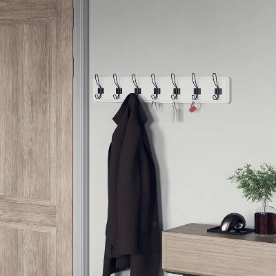 - Seven Rustic Hooks Hold up to 10 lbs. Each