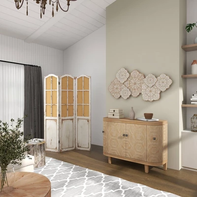 - •Farmhouse wooden wall art features an intricate carved design of blooming flowers on each panel mounted together to form an extraordinary display