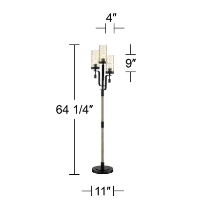Control the amount of light exuded from this three-light tree floor lamp with a dimmable switch on the pole. From the Franklin Iron Works brand, the Granada rustic floor lamp features three lights surrounded by hammered glass shades. A sleek black finish coats the metal construction, creating an ideal light source for your home.