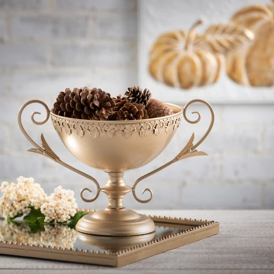 Grace your space with this 13.5″ x 22.5″ metal wall art. Perfect for a Thanksgiving statement piece, this whitewashed panel is adorned with a hand-hammered, embossed illustration of a collection of pumpkins in gold. How grand would this look on your dining room wall? Over the last 55 years, Sullivans has become an industry leader in home decorations. Our brand is rooted in tradition while incorporating modernized trends to keep your home looking up to date with timeless style. Here at Sullivans, we pride ourselves on creating product designs focused on quality and value, ensuring that our customers have access to beautiful products at reasonable price points.