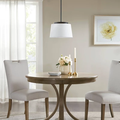 Update your home decor with the charm of the Lansing Pendant. This ceiling pendant features a cylinder shade with a dark metal finish that creates an elegant look. The metal base must be hardwired to the ceiling in your kitchen or entryway. With a ceiling drop down height of 72-inches, this ceiling pendant provides a charming update to your home decor. Comes with a 2 year limited warranty. Professional installation and assembly is required. 1 Type-A light bulb is needed and NOT included. Spot clean only.