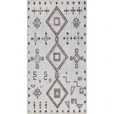 Bring global energy home with this geometric rug from the Nicole Curtis Series 1 Washable Rug. Presented in shades of burgundy, grey, and black, the global-inspired design brings a worldly look to contemporary and boho décor. This flat woven washable rug is crafted from wonderfully soft poly-chenille and cotton fibers.