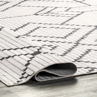 - New and innovative one-piece machine washable rug with a non-slip backing layer attached. This conveniently eliminates the hassle of any additional setup, simply lay flat in the desired space upon arrival and after each wash.