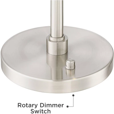 Created by Possini Euro Design®, this swing arm desk lamp is a sleek addition to deliver energy-efficient LED illumination to a living area or home office. This lamp features metal construction with a cool satin nickel finish, offering contemporary flair. The shade is a metal dome, delivering directed lighting that’s perfect on a desk or nightstand.