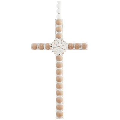 - Minimalistic wooden bead crosses showcase a lightweight and compact design that are adorned with decorative orbs and center carved flower for a delicate touch