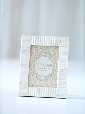 Put your favorite memories on display with Shiraleah’s Roma Textured picture frame. This 5×7 frame features a textured design on a Bone surface. The textured design will add a chic, classic, and sophisticated look to your table top décor. The easel back stand allows the frame to sit on any shelf or table display. A glass shield protects your 4×6 artwork and the frame can sit vertical or horizontal. Mix and match with other Shiraleah frames!
