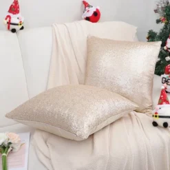PiccoCasa Sequin Throw Pillow Covers Glitzy Cushion Covers Shiny Sparkling Satin Pillowcase 2 Pcs