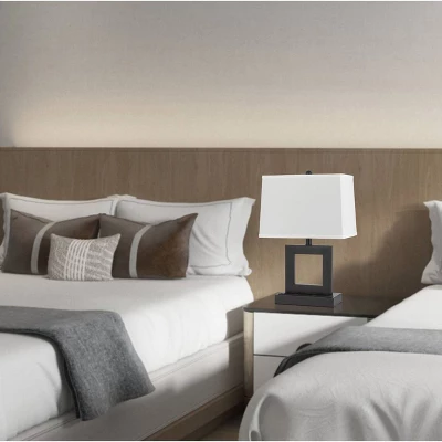 Cal Lighting’s Cachan Modern styled metal desk lamp is 21.5′ tall and features with 2 grounded power outlets and 1 USB charging port. this lamp uses one 100 watt bulb (not included). The On/Off rocker switch is on the socket. Hardback shade included. Brush Steel finish. This lamp will be a great addition to your office area, end table, or night stand.