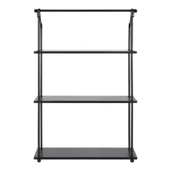 19″ Diameter Kei Modern Round Accent Mirror With Shelf Black – Kate & Laurel All Things Decor