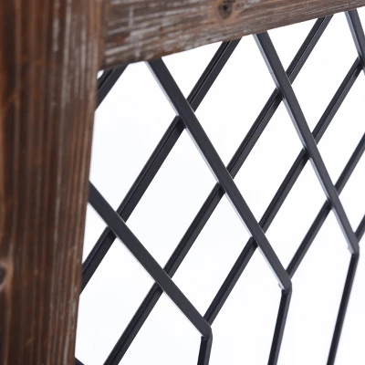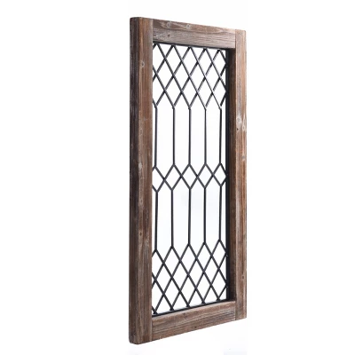 - This alternative wall piece resembles a window panel with its wooden frame and wrought iron inner design.