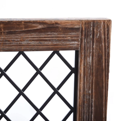 This simple wall decor uses a classic window pane motif with an intricate metal pattern to give a rustic touch to any home. It features a plywood and MDF structure paired with metal wire designed to introduce pattern and geometry to any wall. This piece exemplifies superior product design and great styling. It will pair well with transitional styling. If you put it in the bedroom or family room, this decor stands out. Suitable for residential use in a dry location. Due to the way this piece is made, no two are exactly alike and color finishes may vary from piece to piece. Due to lighting and monitor differences, actual colors and finishes may vary slightly from what appears online